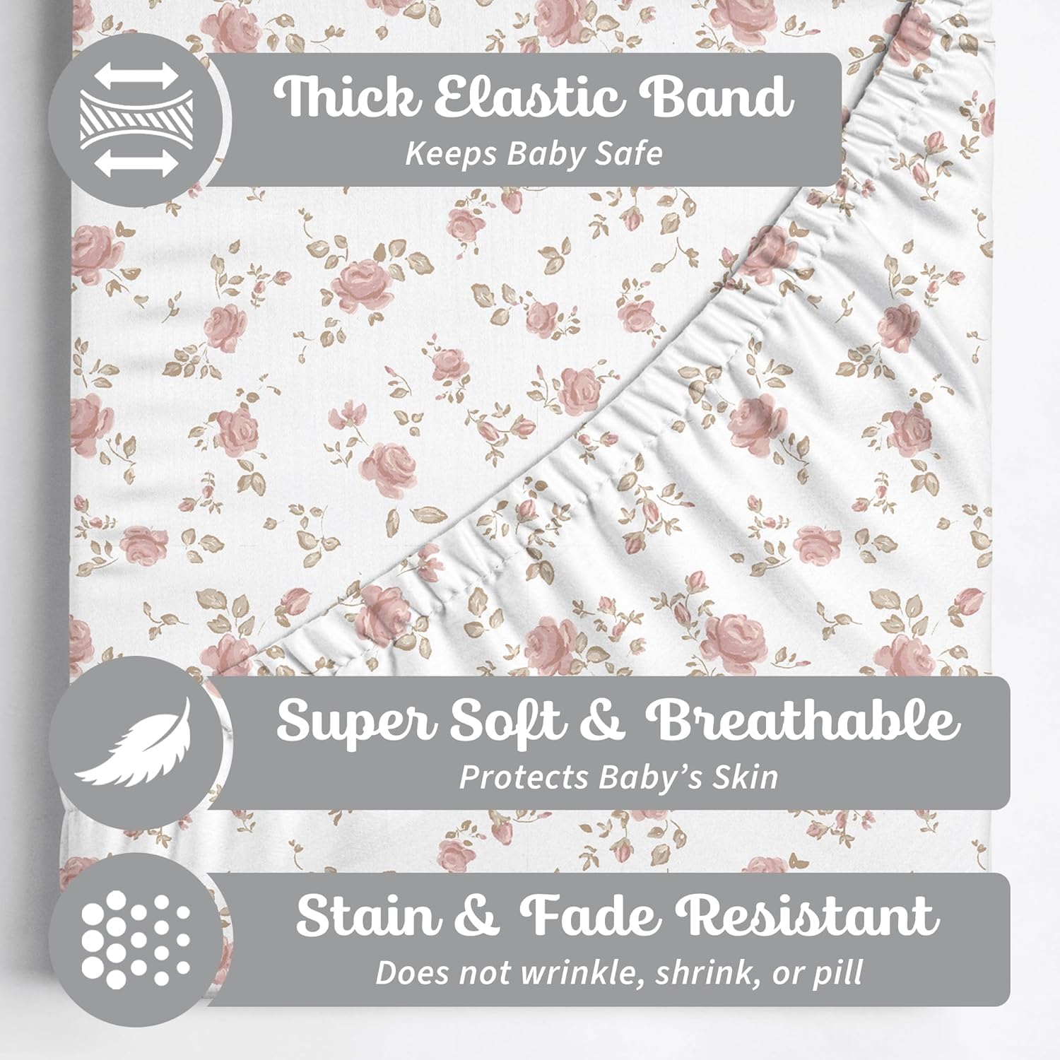 🌷 BEAUTIFUL DESIGN, UNBELIEVABLY SOFT MATERIAL – This beautiful custom pattern is printed on the most luxuriously premium organic cotton blend. Thicker elastic and deeper pockets ensure that our bassinet mattress sheets will NOT slip off the mattress pad. You’ll feel the soft, yet stretchy and silky material as you pull the sheets and snug, creating a safe and soothing space for your baby to sleep.