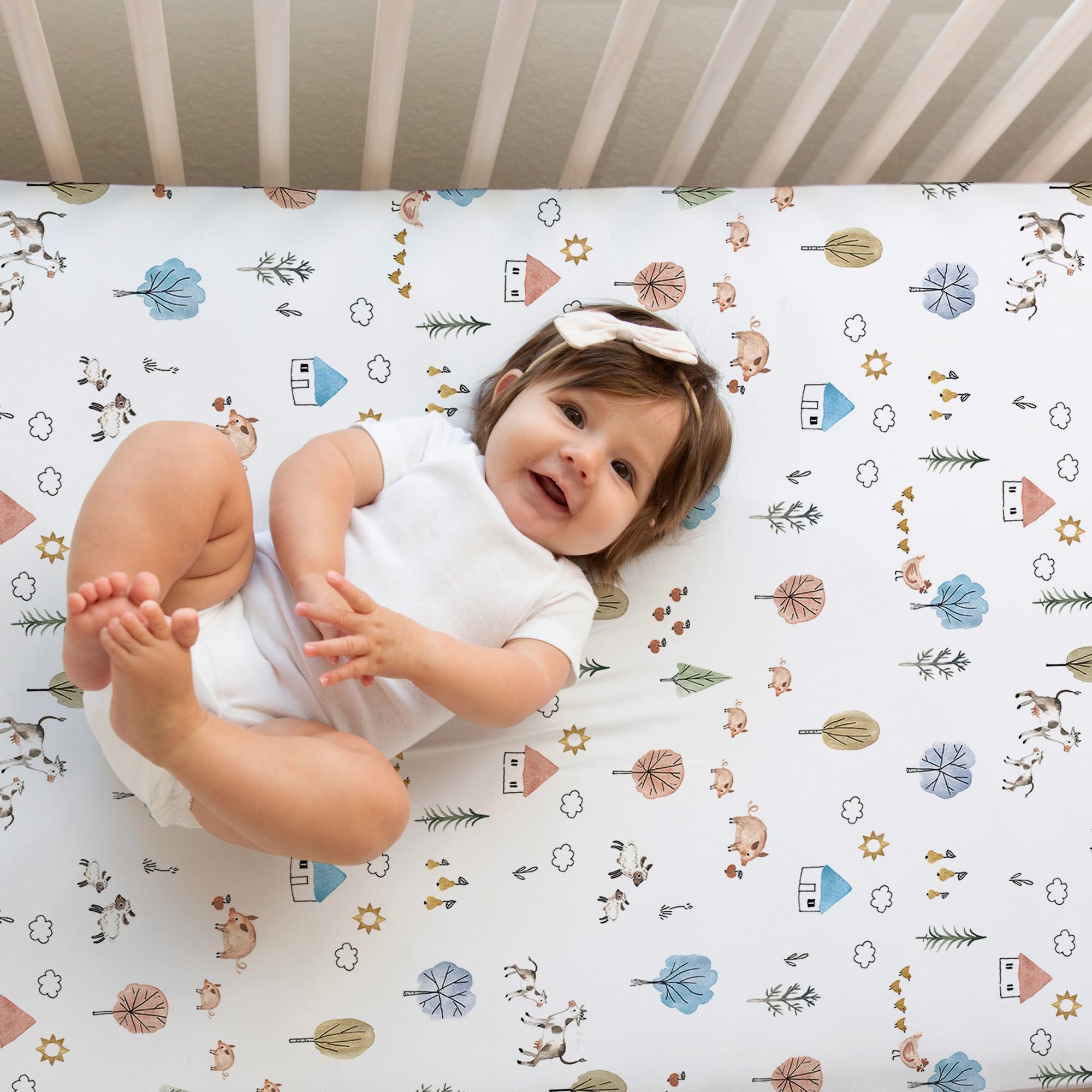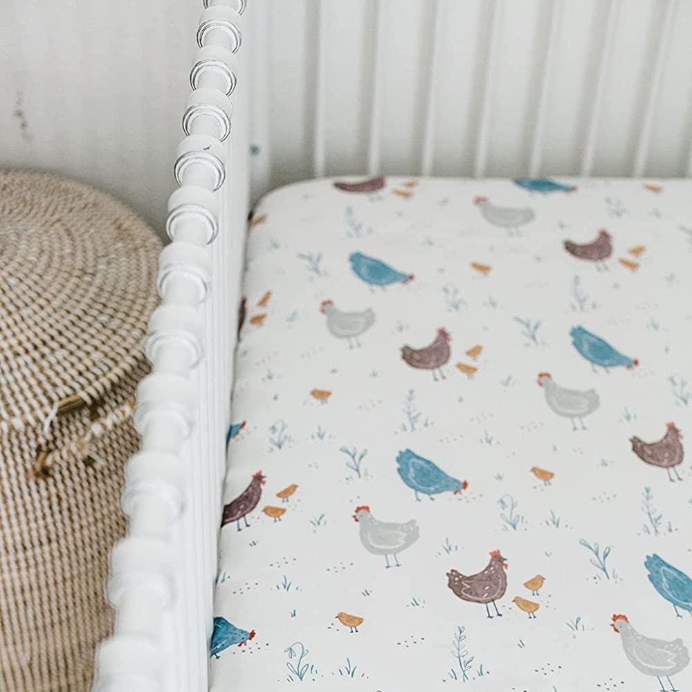 🐓 MADE TO LAST - Our organic cotton blend crib sheets are made to last. For best long-term care, machine wash these sheets on cold with similar colors on a gentle cycle. You can then tumble dry on low heat or line dry to best preserve the bright and colorful designs of this quick-drying material. Fill your world with beauty by mix and matching with Sorrel + Fern’s baby mobile.
