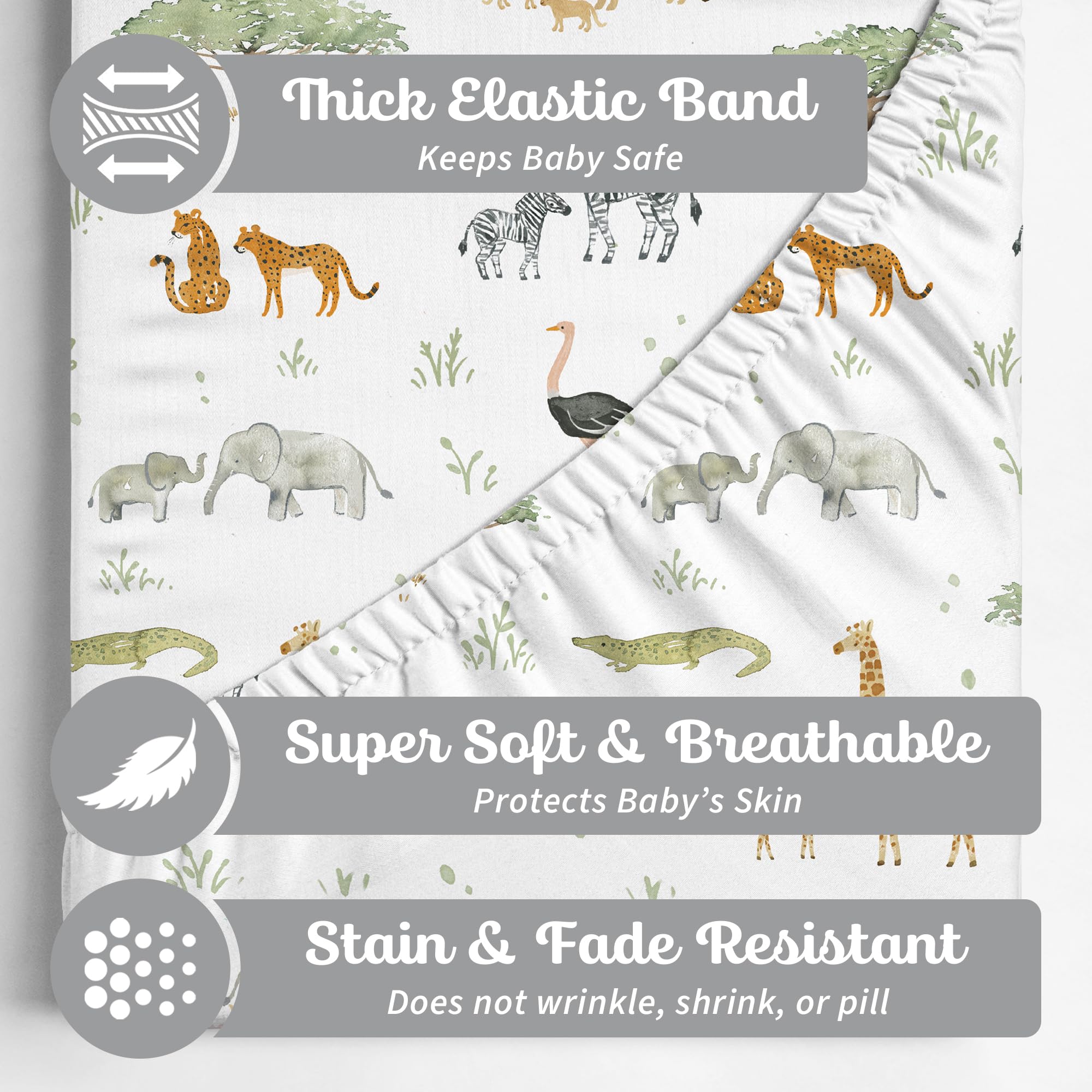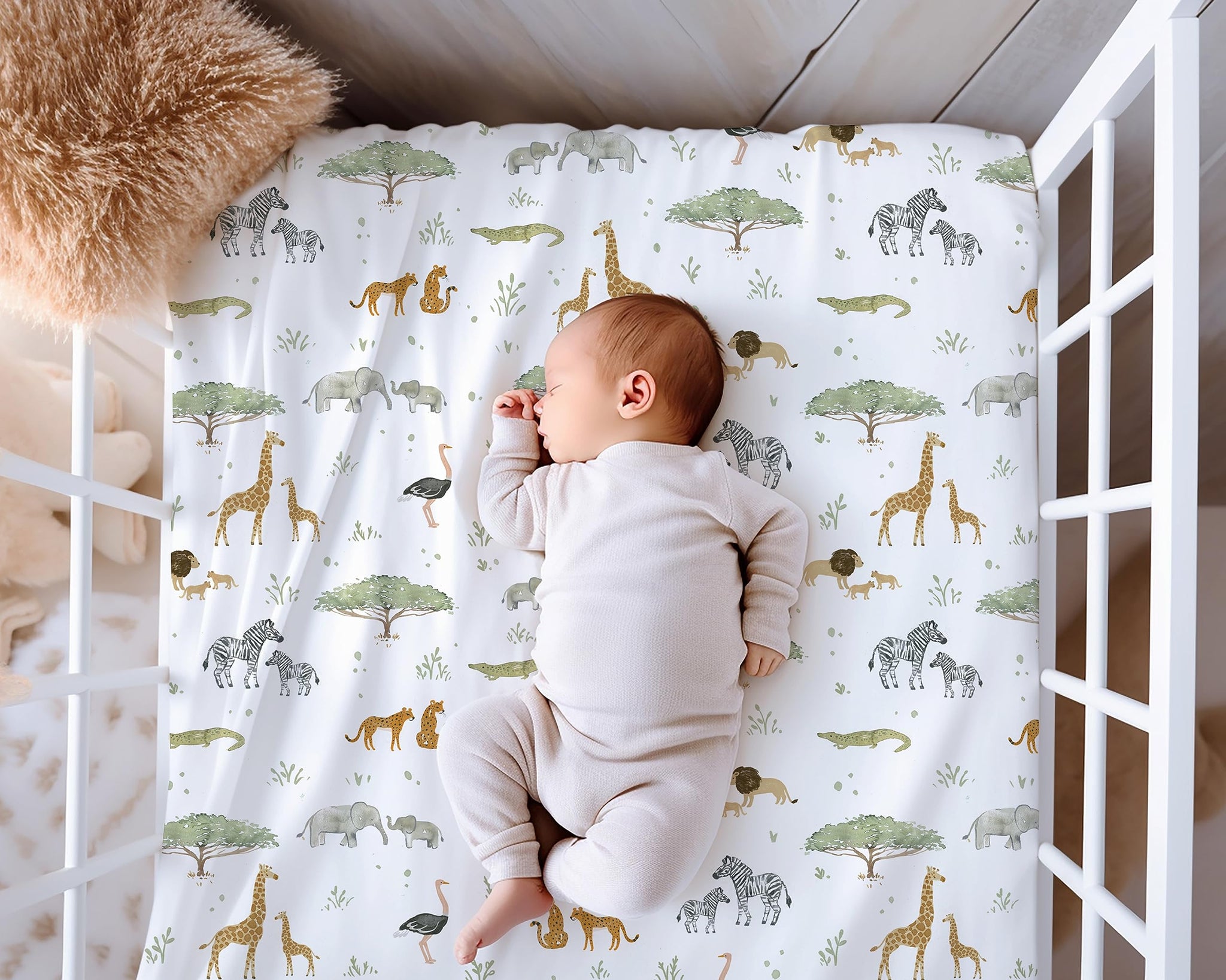 🦒 INCREDIBLY SOFT & BEAUTIFUL – This beautiful custom pattern is printed on the most luxuriously soft cotton blend. Thicker elastic and deeper pockets ensure that our crib mattress sheet will NOT slip off the mattress. You’ll feel the incredibly soft, yet stretchy and silky material as you pull the sheets and snug, creating a safe and soothing space for your baby to sleep.