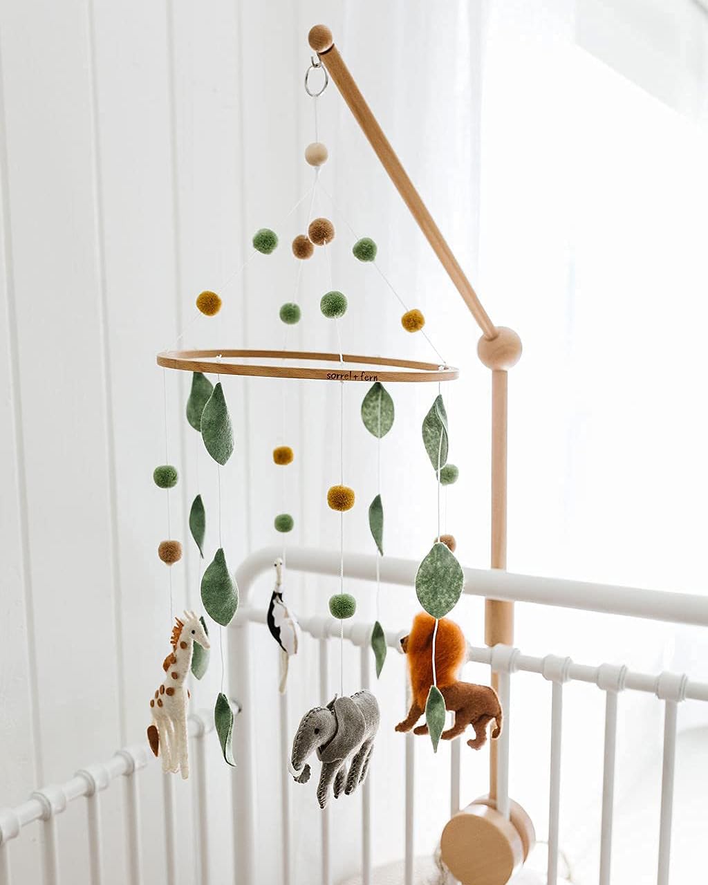 ③ Pieces are adjustable! If your mobile is hanging too low for your crib, simply move the pieces up on the string, tie a knot and cut off excess string.