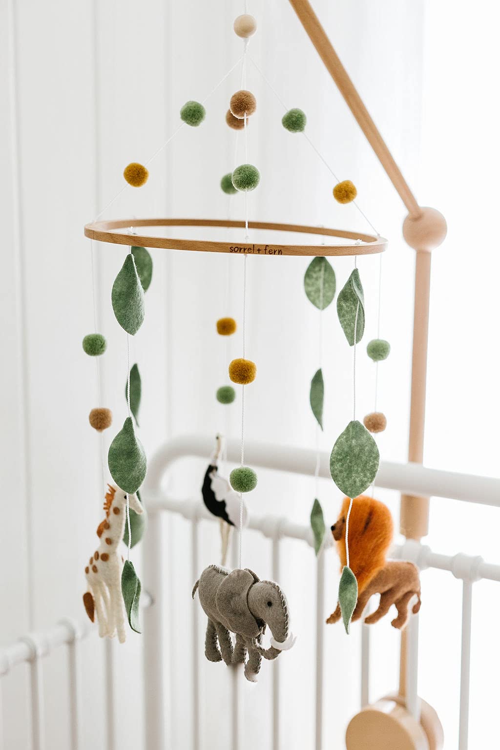① Safari Adventure Mobile - Hand stitched felt lion, ostrich, giraffe and elephant figures are the stars of this adorable African themed mobile.
