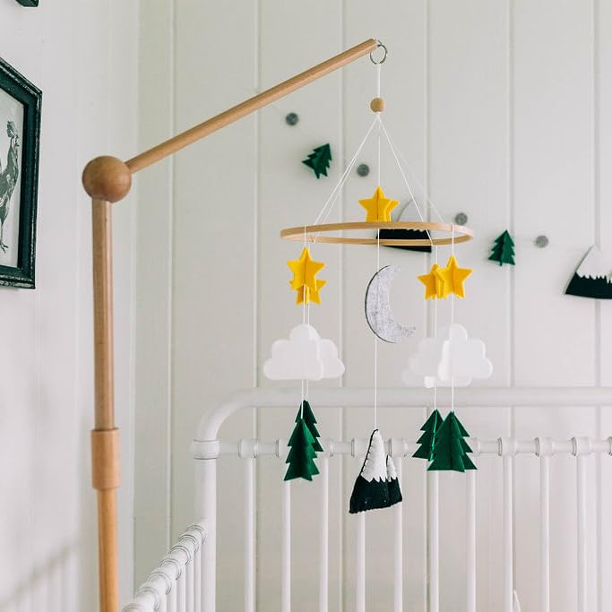 ③ Pieces are adjustable! If your mobile is hanging too low for your crib, simply move the pieces up on the string, tie a knot and cut off excess string.