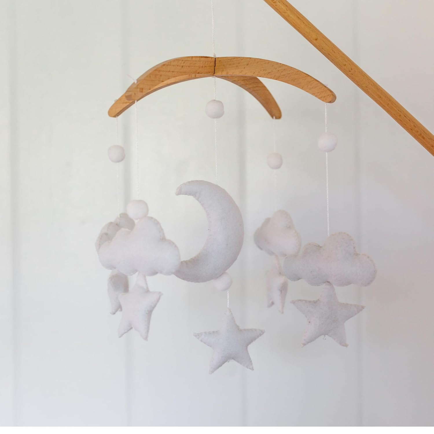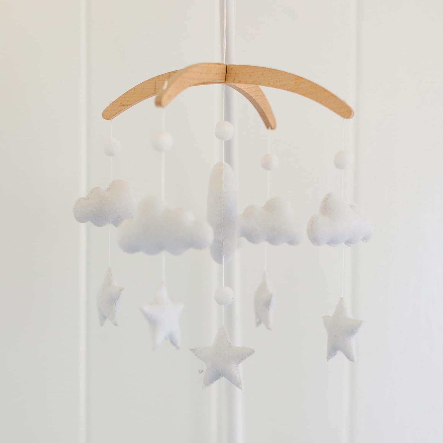 ☁️ SIMPLE & MODERN - Crafted with a 3-D design, this felt and wood mobile captures attention from both adults and babies. It's an excellent choice for a baby shower, birthday, or registry.