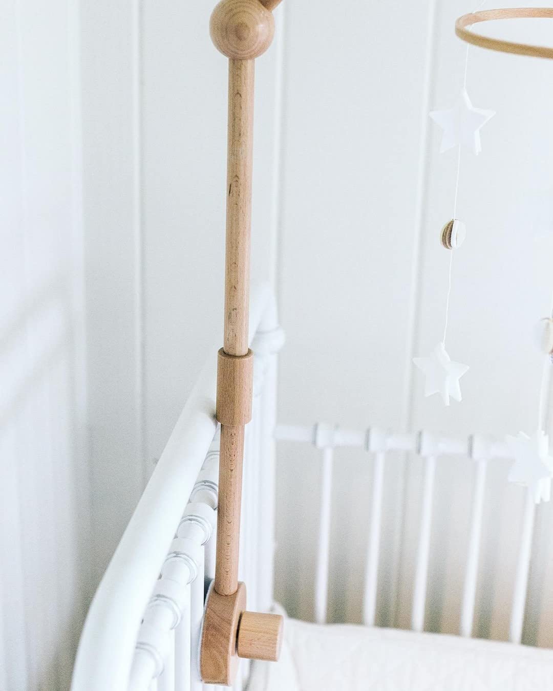 (⚠ ATTENTION: This crib arm works with MOST cribs. There must be bars or slats, and a flat surface for the wooden arm to attach to)